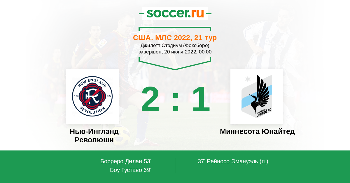 Протокол матча Нью-Инглэнд Революшн против Миннесота Юнайтед