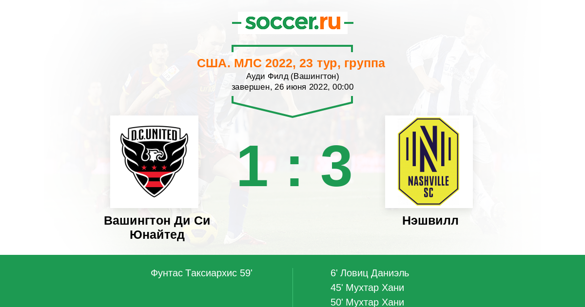 Протокол матча Вашингтон Ди Си Юнайтед против Нэшвилл