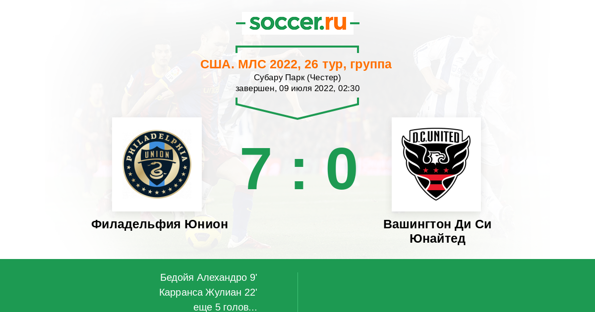 Протокол матча Филадельфия Юнион против Вашингтон Ди Си Юнайтед