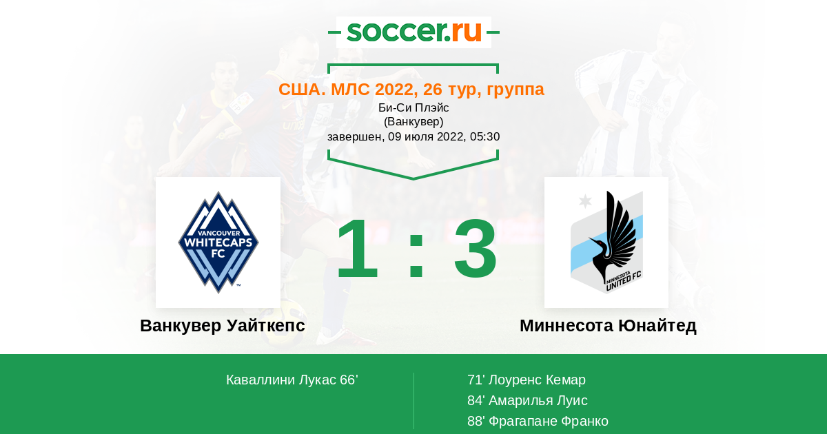 Протокол матча Ванкувер Уайткепс против Миннесота Юнайтед