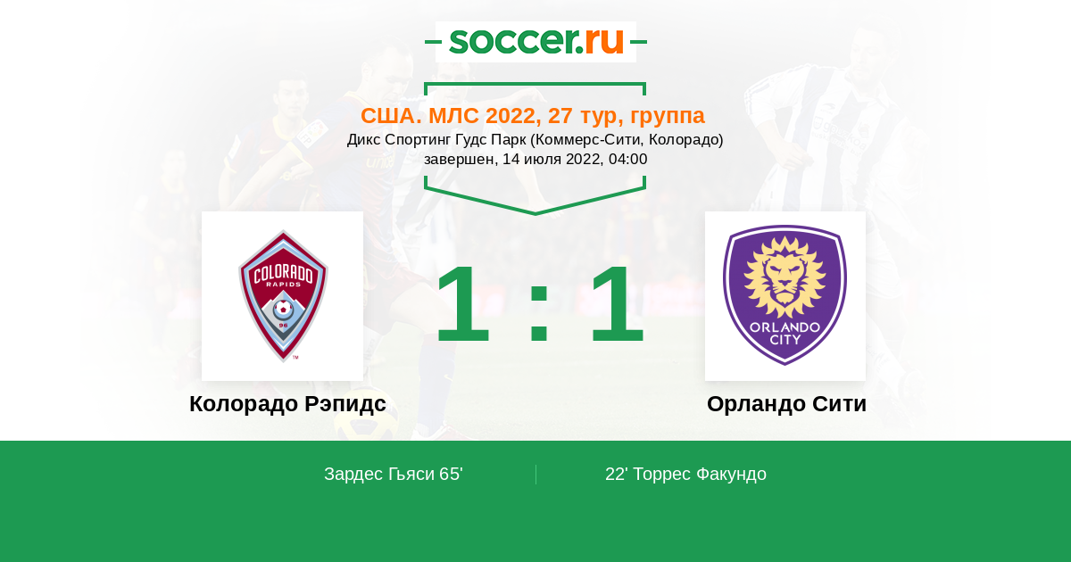 Протокол матча Колорадо Рэпидс против Орландо Сити