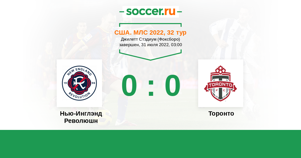 Протокол матча Нью-Инглэнд Революшн против Торонто