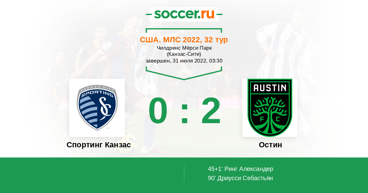 Протокол матча Спортинг Канзас против Остин