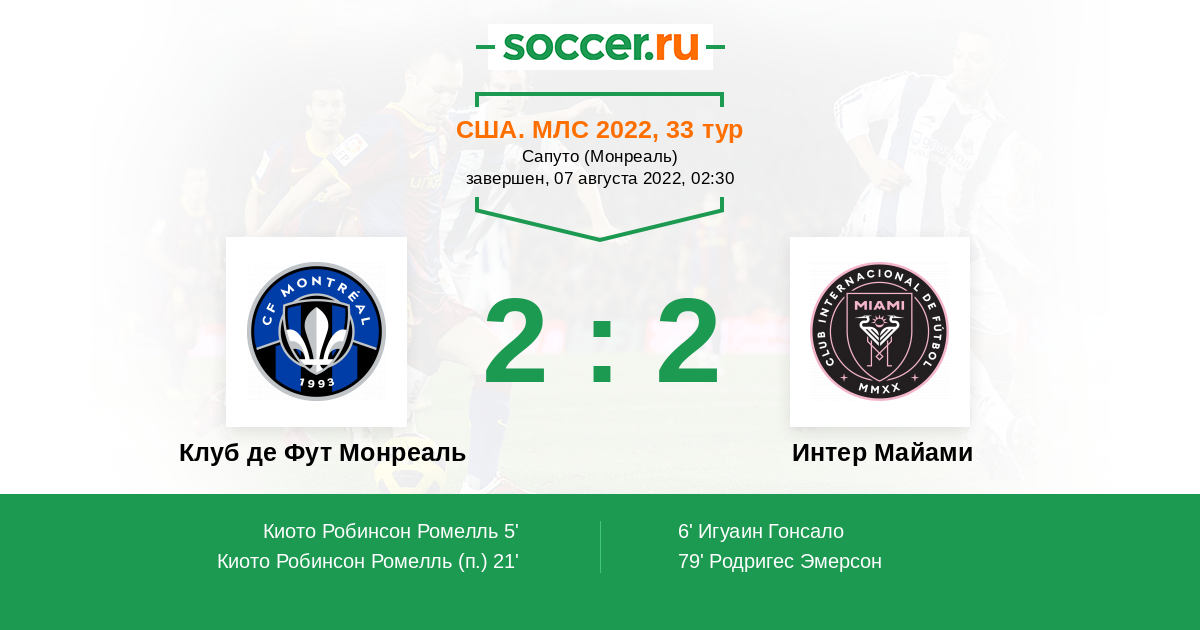 Протокол матча Клуб де Фут Монреаль против Интер Майами