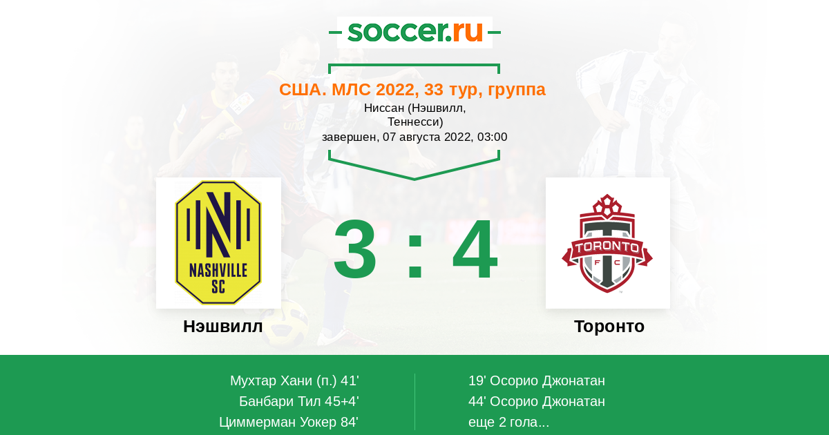 Протокол матча Нэшвилл против Торонто