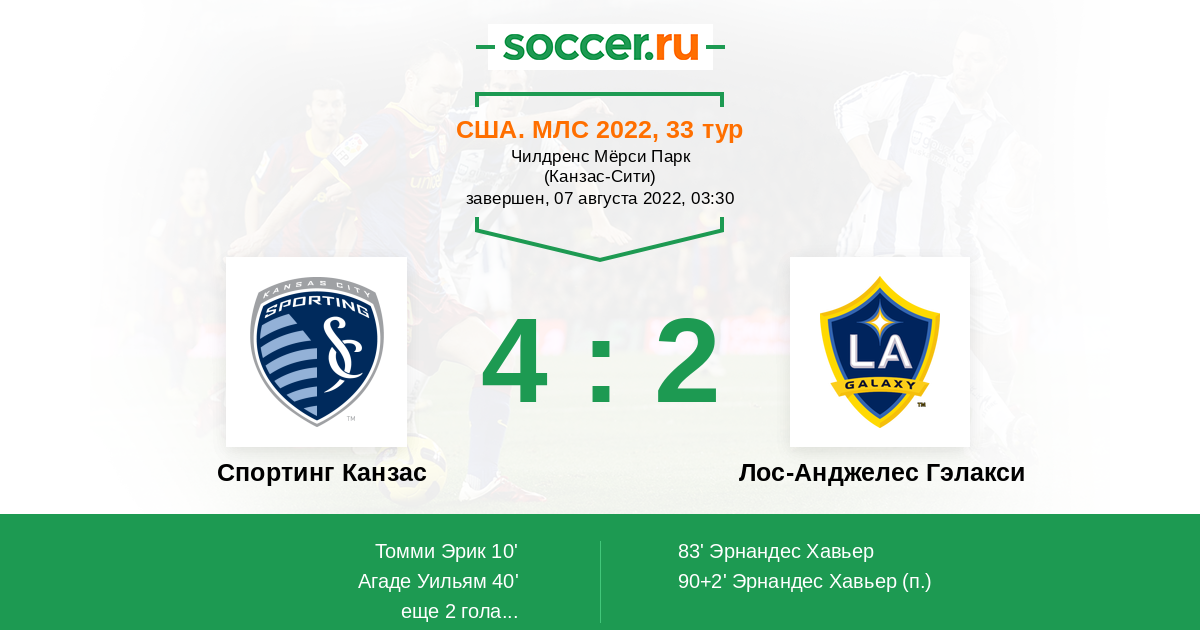 Протокол матча Спортинг Канзас против Лос-Анджелес Гэлакси