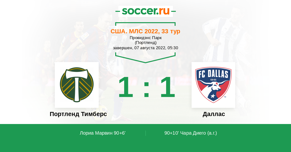 Протокол матча Портленд Тимберс против Даллас