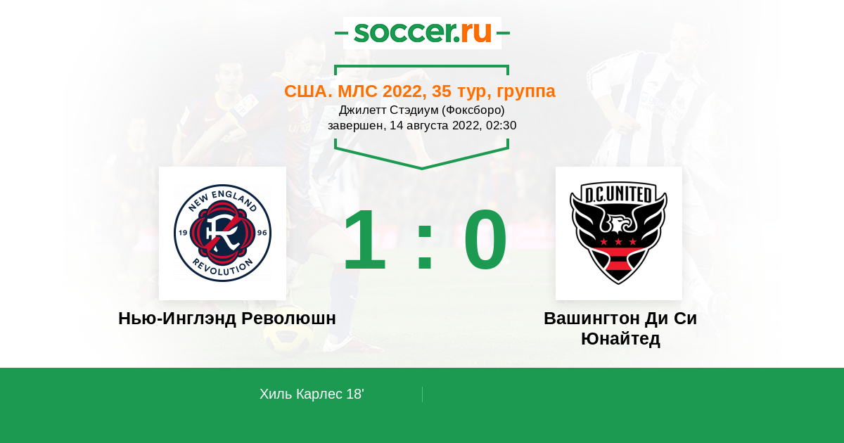 Протокол матча Нью-Инглэнд Революшн против Вашингтон Ди Си Юнайтед