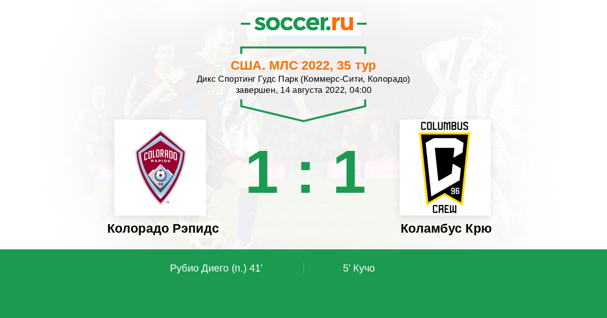 Протокол матча Колорадо Рэпидс против Коламбус Крю