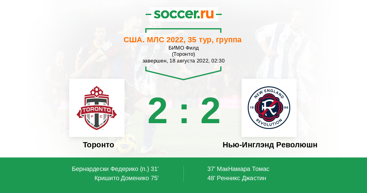 Протокол матча Торонто против Нью-Инглэнд Революшн