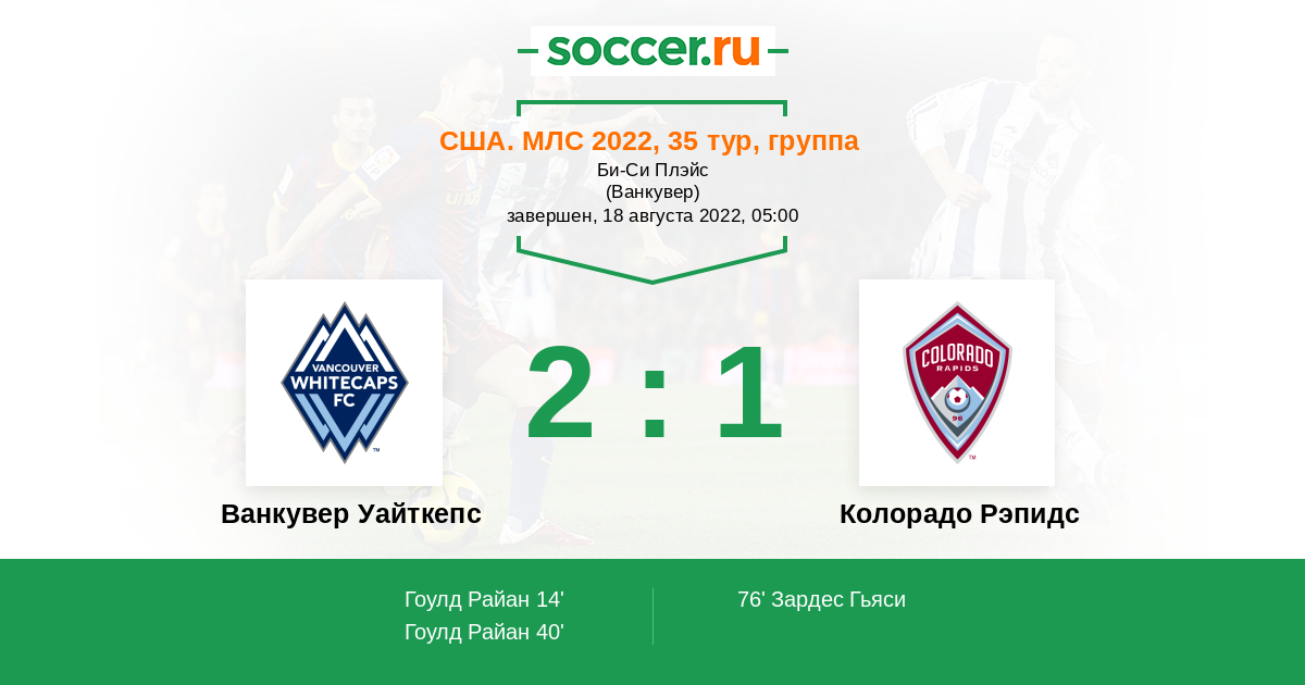 Протокол матча Ванкувер Уайткепс против Колорадо Рэпидс