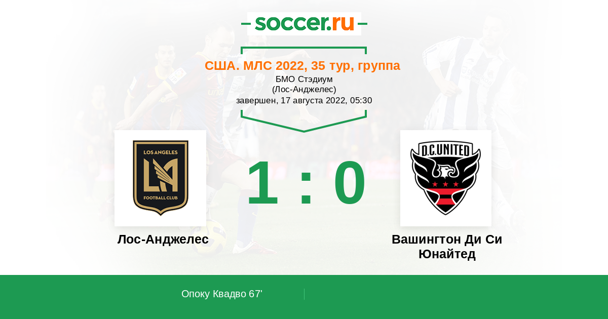 Протокол матча Лос-Анджелес против Вашингтон Ди Си Юнайтед