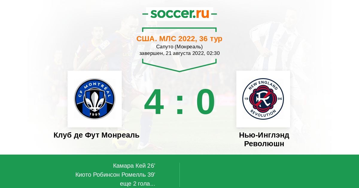 Протокол матча Клуб де Фут Монреаль против Нью-Инглэнд Революшн