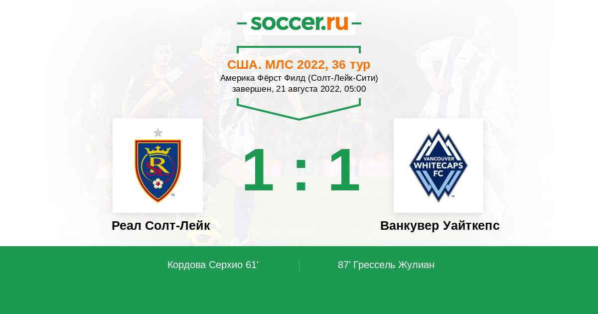 Протокол матча Реал Солт-Лейк против Ванкувер Уайткепс