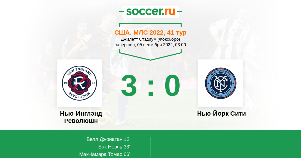 Протокол матча Нью-Инглэнд Революшн против Нью-Йорк Сити