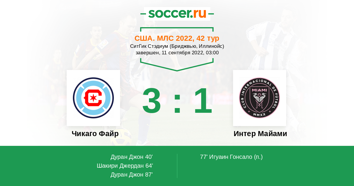 Протокол матча Чикаго Файр против Интер Майами
