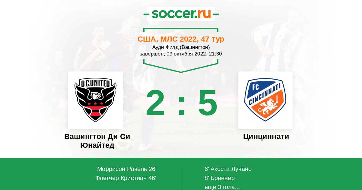 Протокол матча Вашингтон Ди Си Юнайтед против Цинциннати