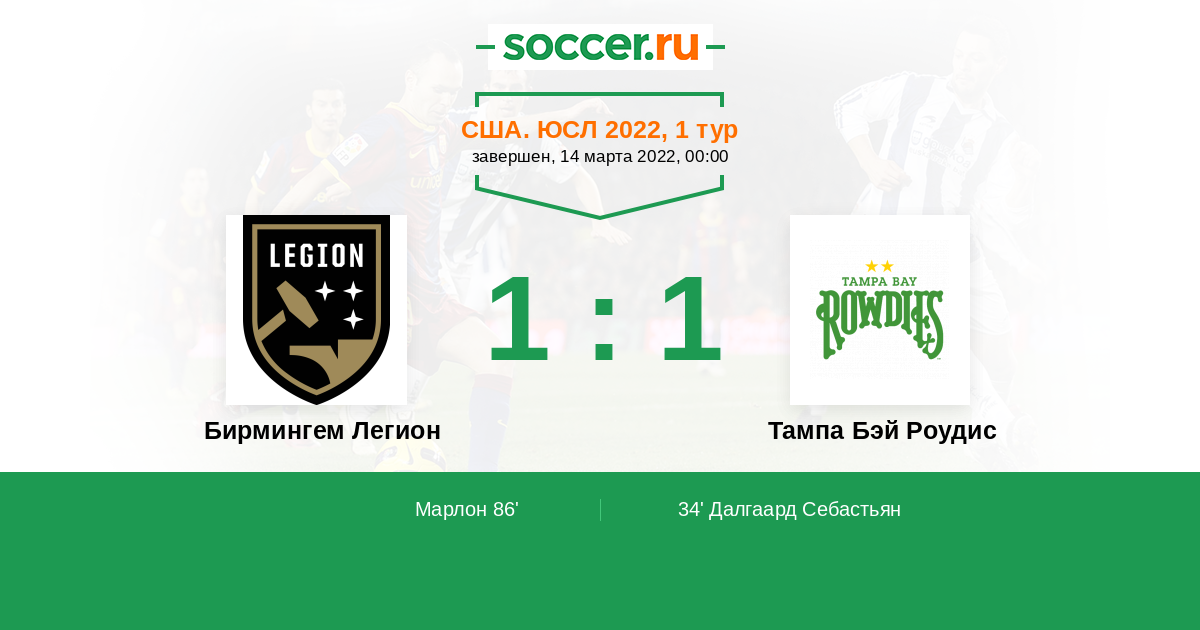 Протокол матча Бирмингем Легион против Тампа Бэй Роудис