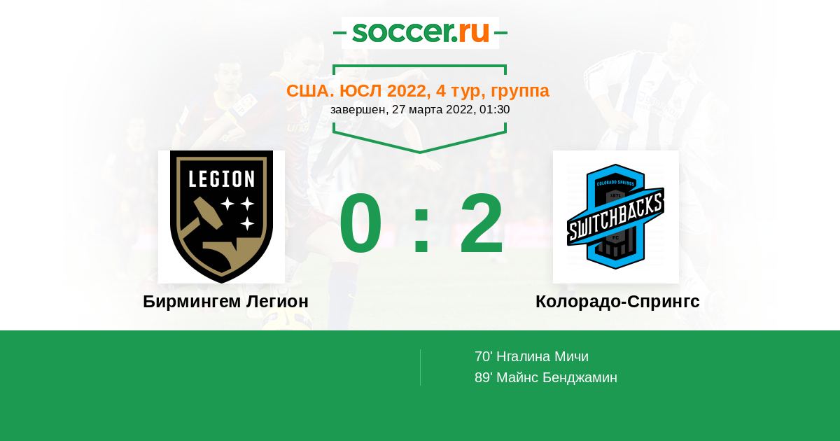Протокол матча Бирмингем Легион против Колорадо-Спрингс
