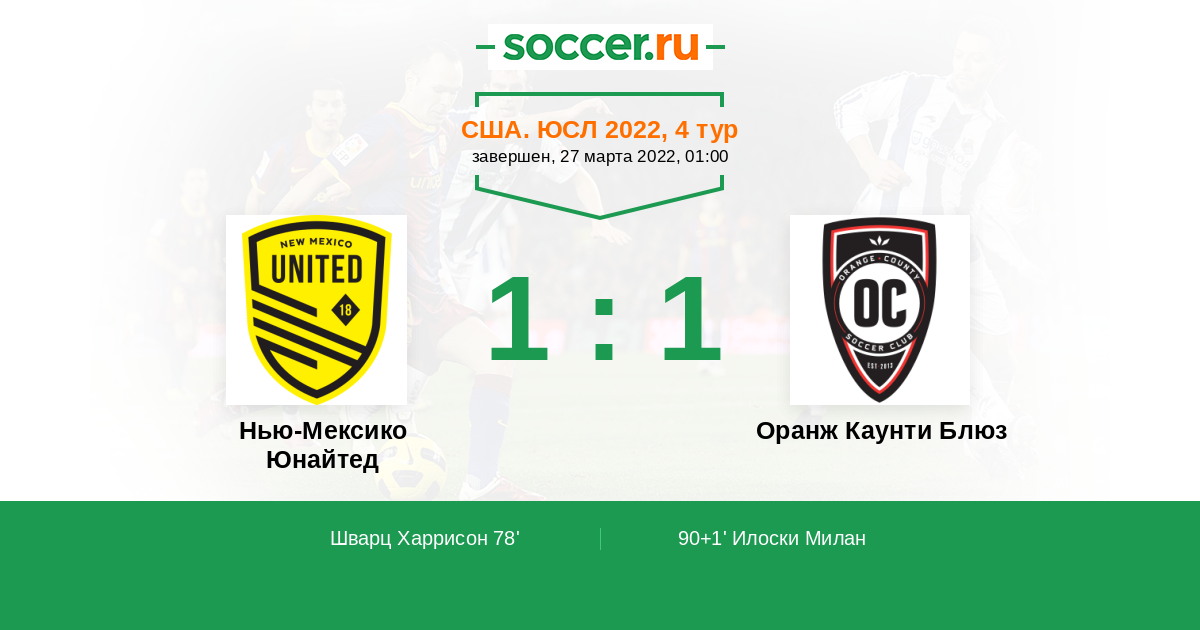 Протокол матча Нью-Мексико Юнайтед против Оранж Каунти Блюз