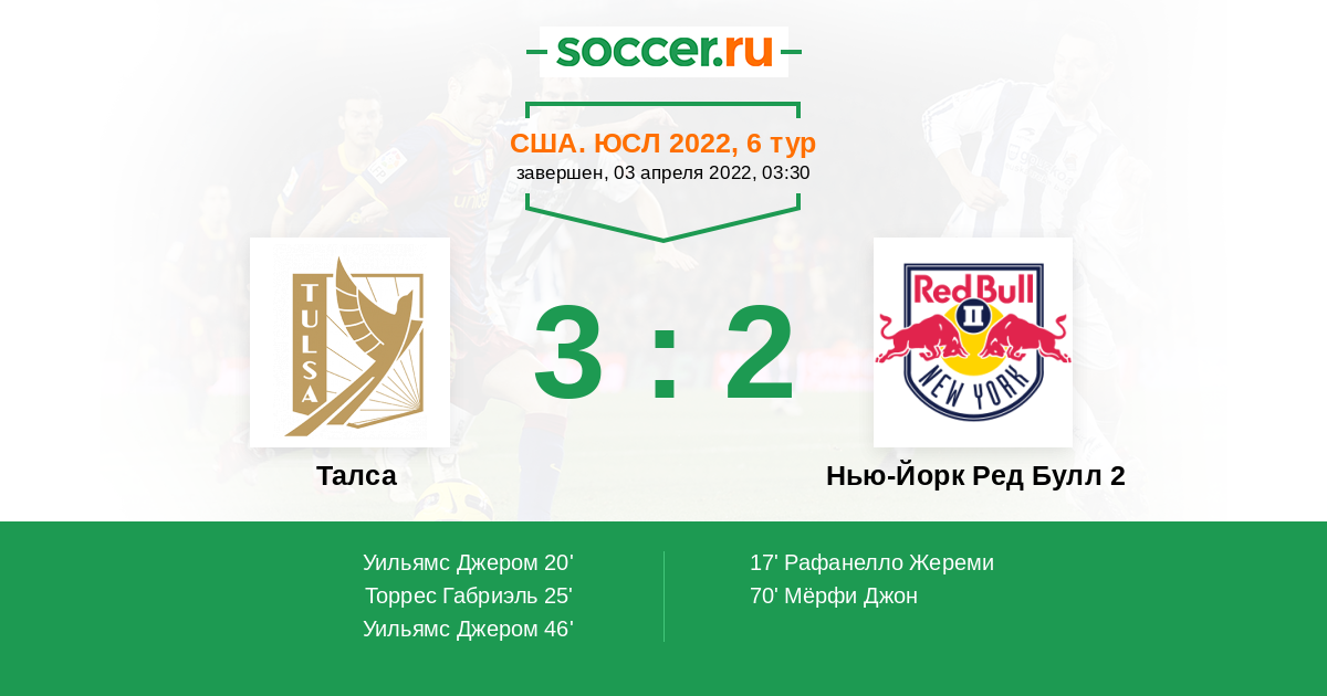 Протокол матча Талса против Нью-Йорк Ред Булл 2
