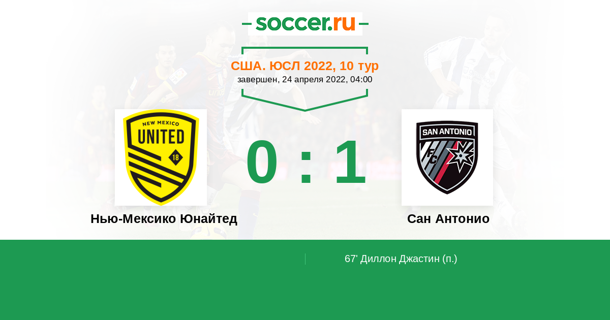 Протокол матча Нью-Мексико Юнайтед против Сан Антонио