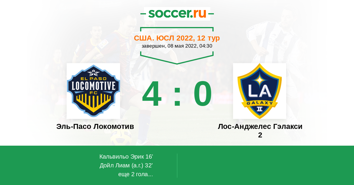Протокол матча Эль-Пасо Локомотив против Лос-Анджелес Гэлакси 2