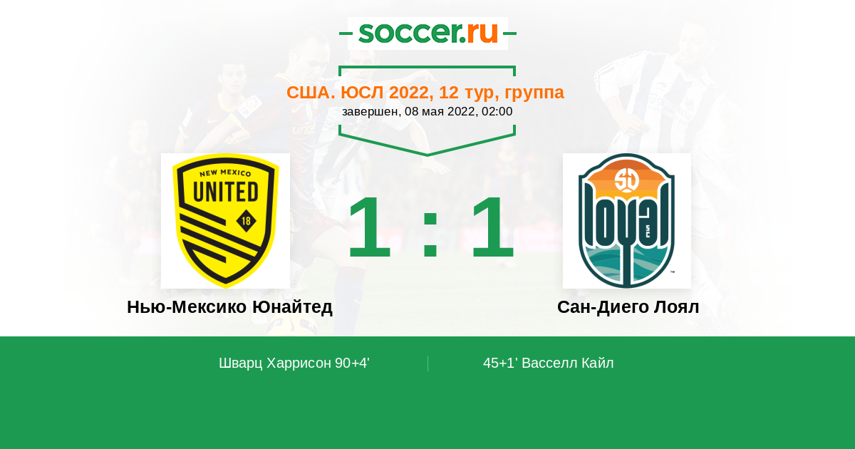 Протокол матча Нью-Мексико Юнайтед против Сан-Диего Лоял