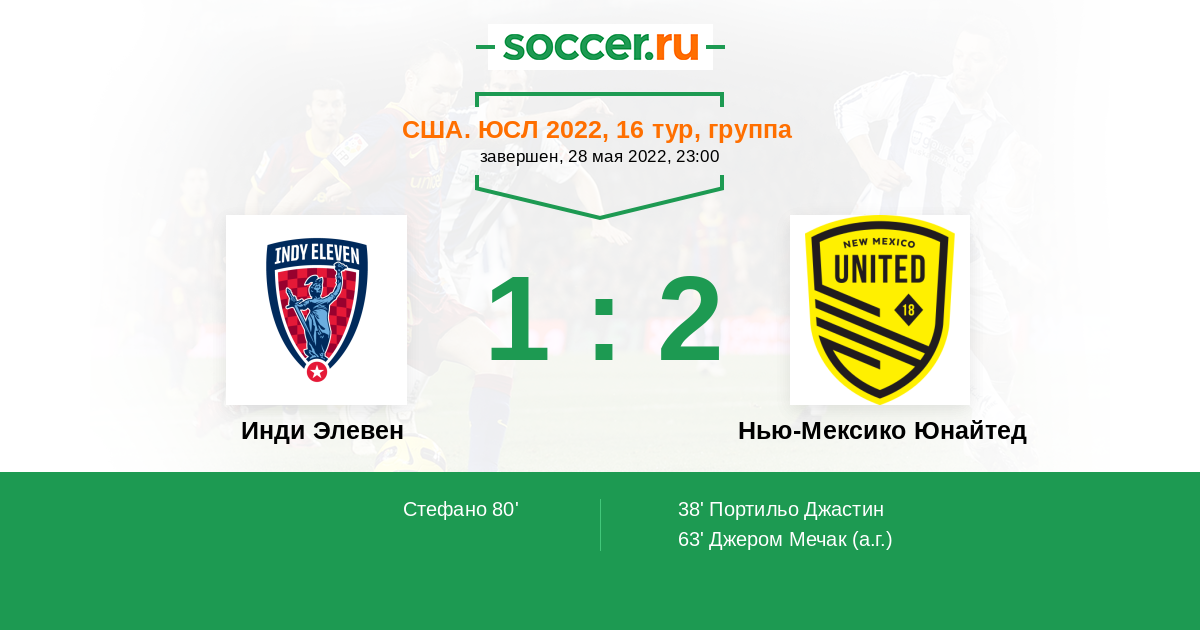 Протокол матча Инди Элевен против Нью-Мексико Юнайтед