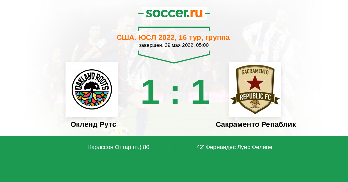 Протокол матча Окленд Рутс против Сакраменто Репаблик