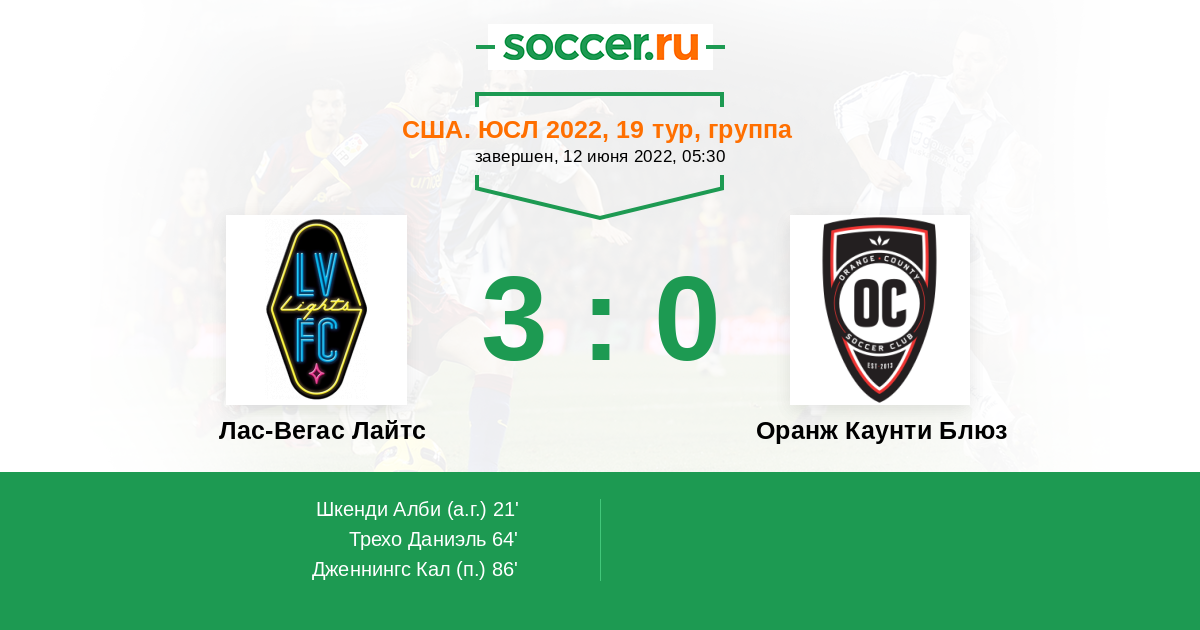 Протокол матча Лас-Вегас Лайтс против Оранж Каунти Блюз