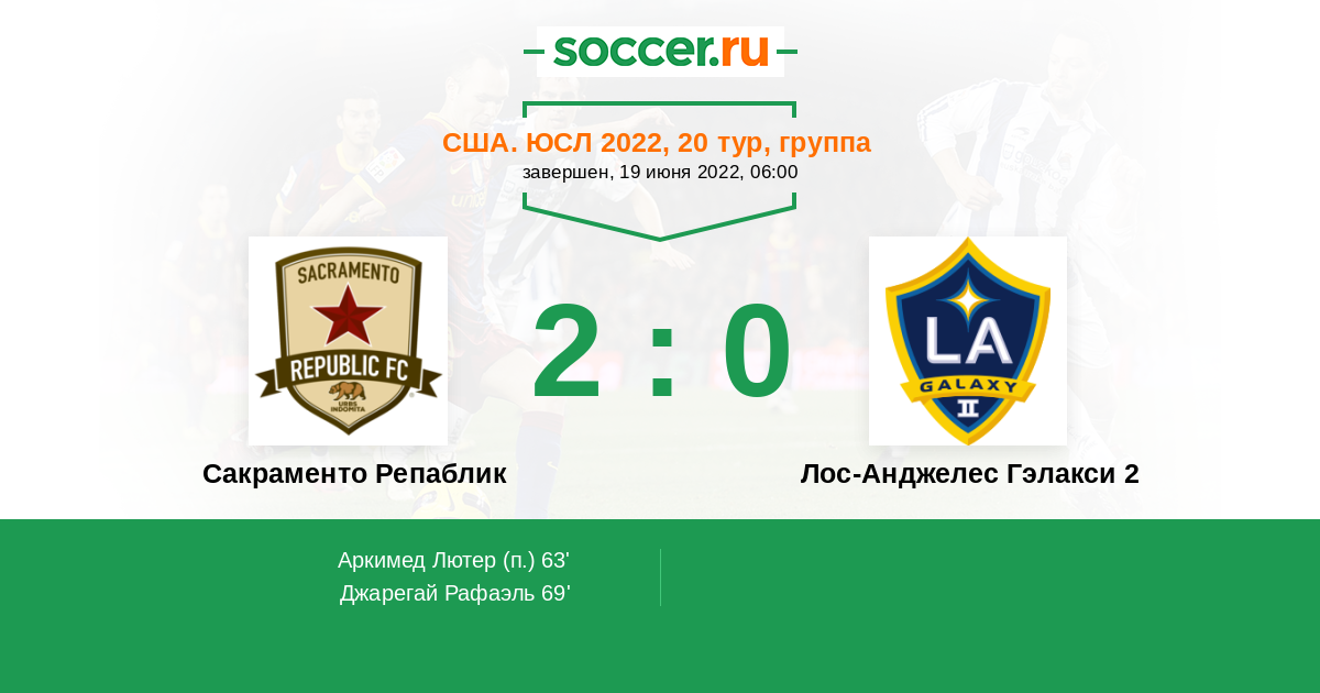 Протокол матча Сакраменто Репаблик против Лос-Анджелес Гэлакси 2