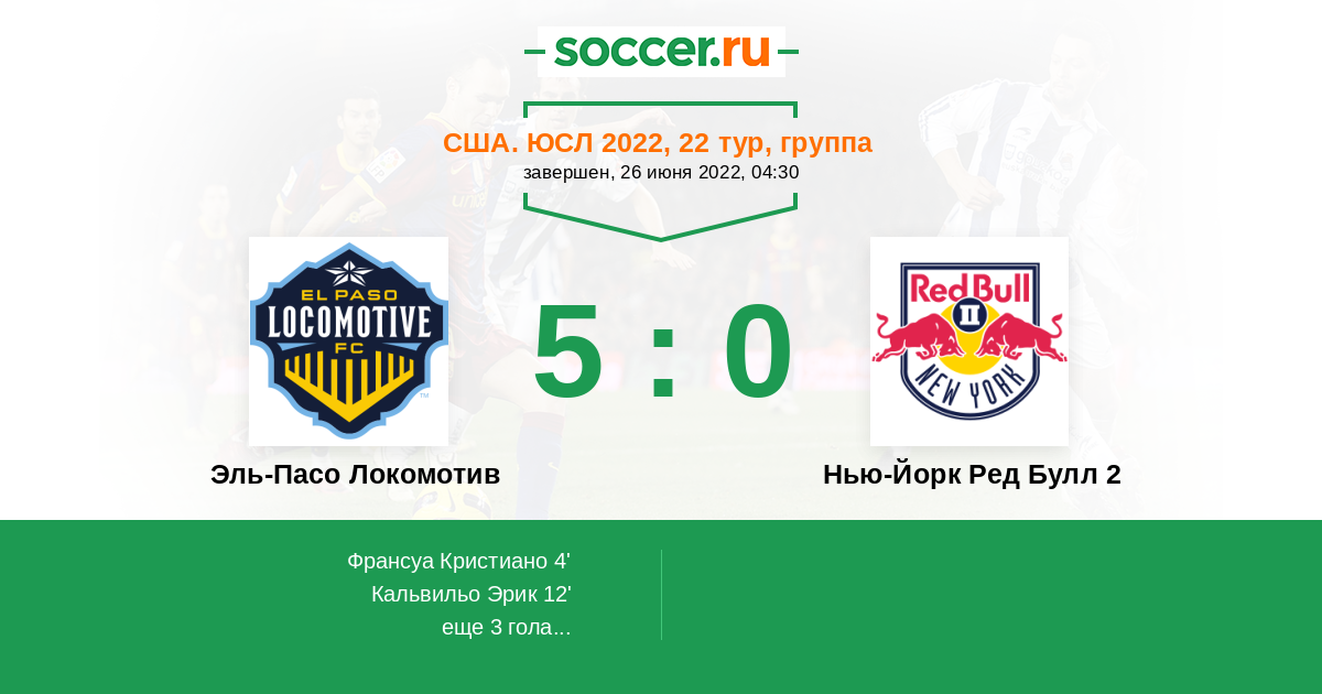 Протокол матча Эль-Пасо Локомотив против Нью-Йорк Ред Булл 2
