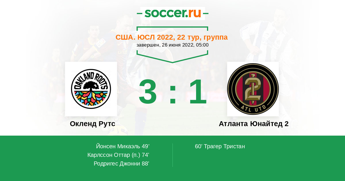 Протокол матча Окленд Рутс против Атланта Юнайтед 2