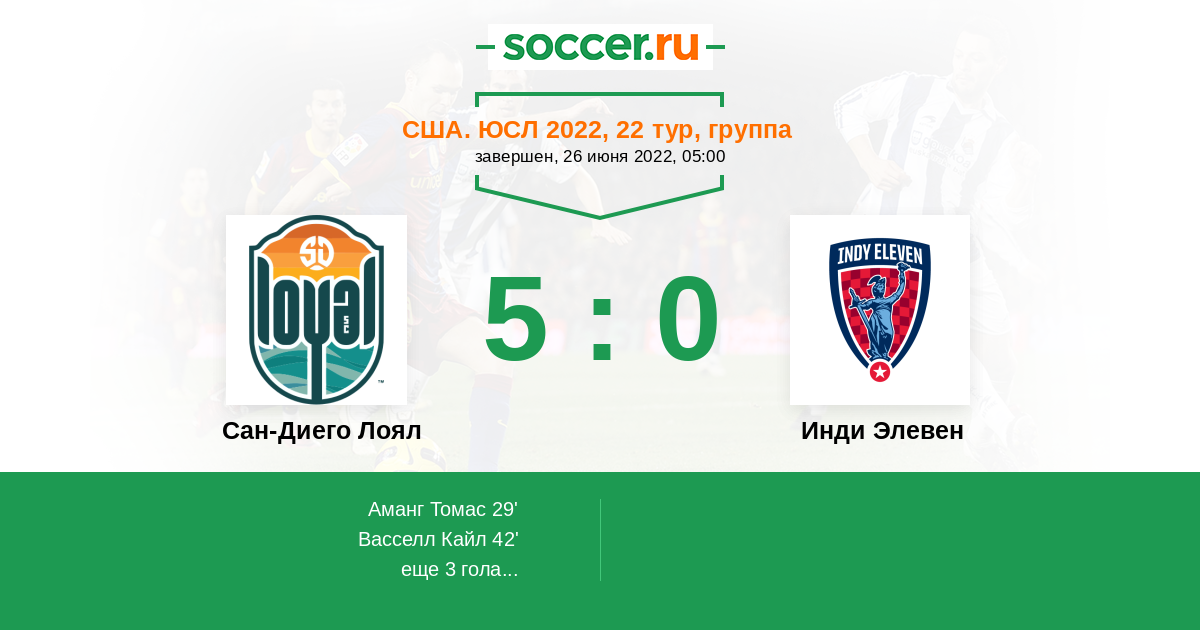Протокол матча Сан-Диего Лоял против Инди Элевен