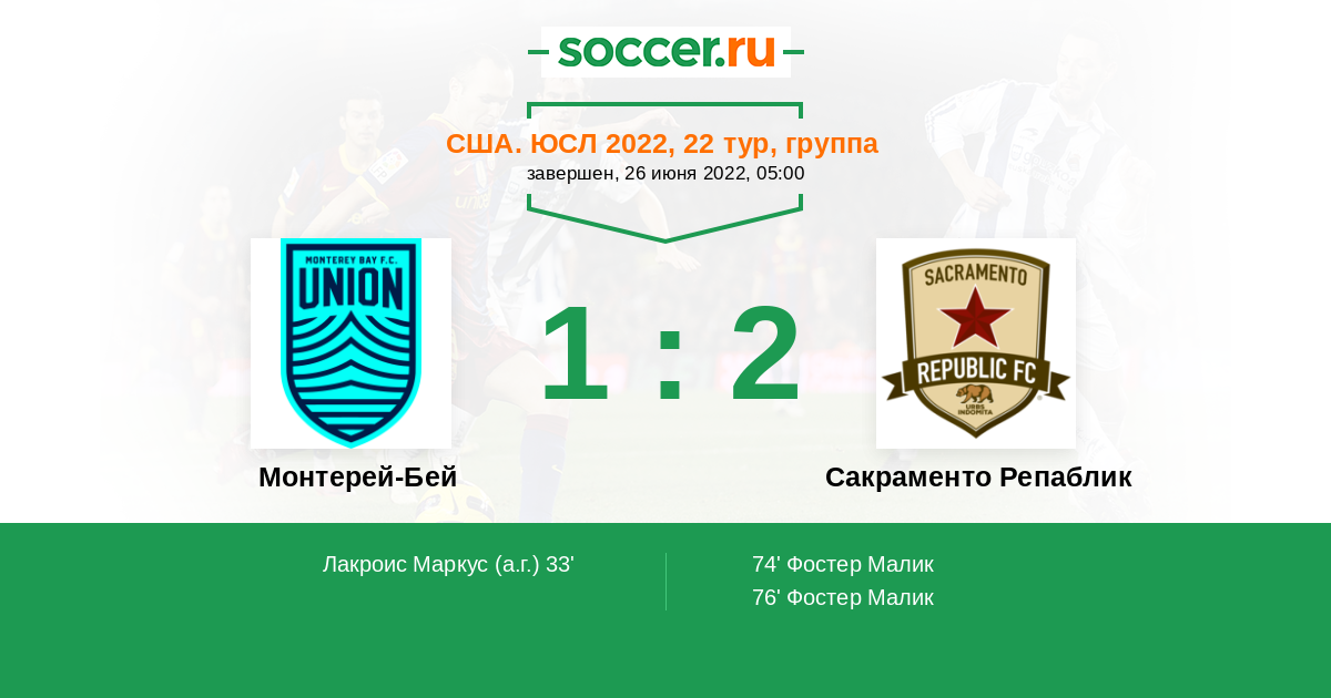 Протокол матча Монтерей-Бей против Сакраменто Репаблик