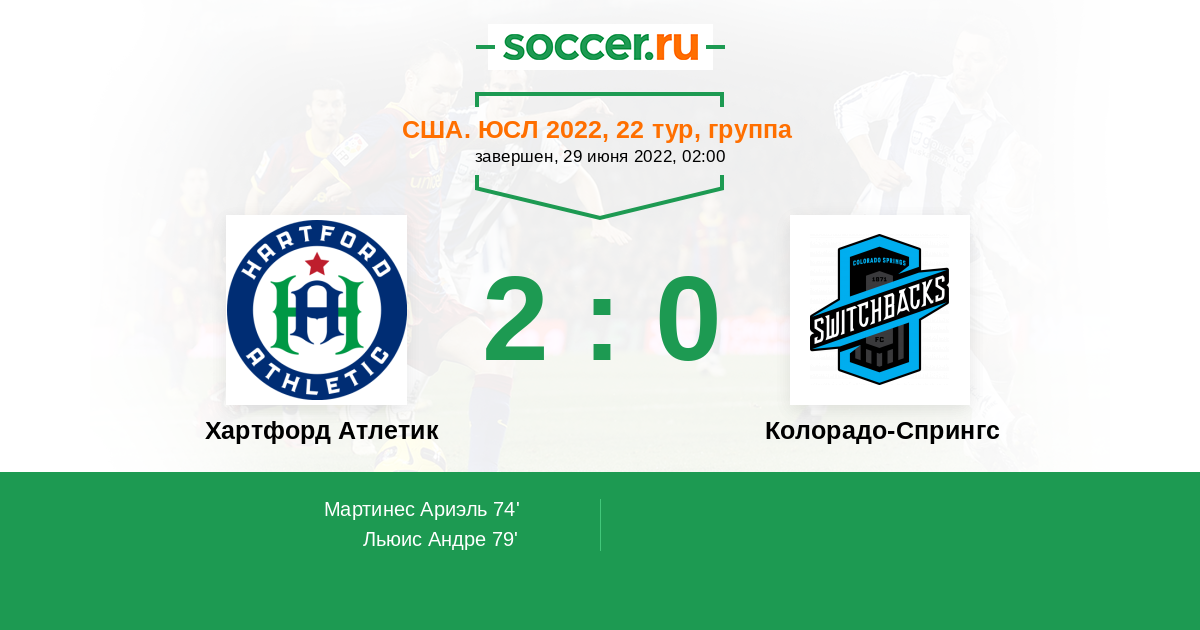 Протокол матча Хартфорд Атлетик против Колорадо-Спрингс