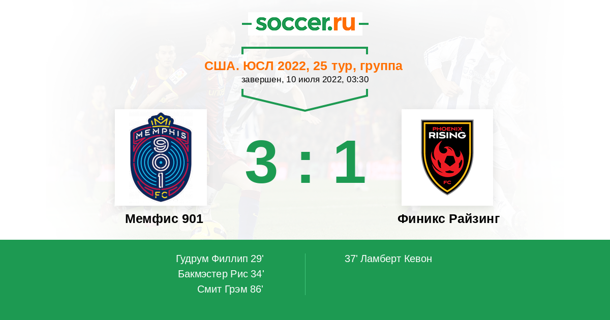 Протокол матча Мемфис 901 против Финикс Райзинг
