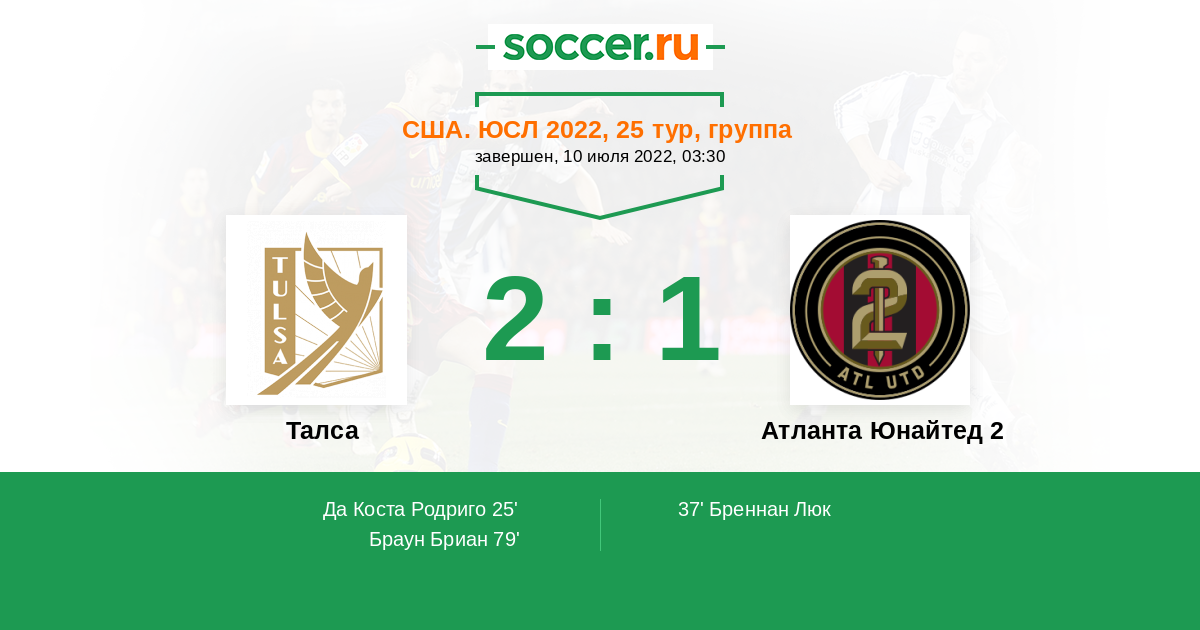 Протокол матча Талса против Атланта Юнайтед 2