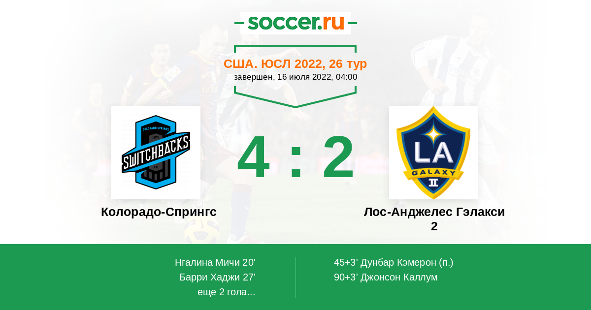 Протокол матча Колорадо-Спрингс против Лос-Анджелес Гэлакси 2
