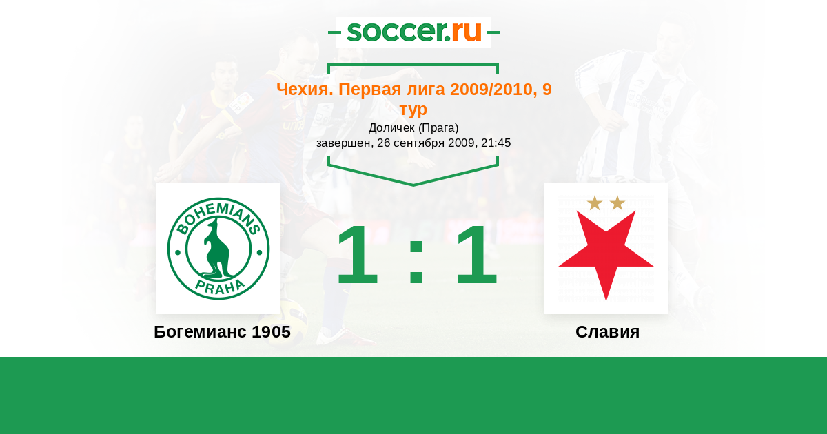 Чехия. Первая Лига 16.07.2010 Богемианс 1905 Логотип футбольный клуб Богемианс 1905 (Прага) 1:1 Логотип футбольный клуб Славия (Прага) Славия