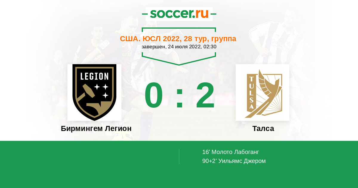 Протокол матча Бирмингем Легион против Талса
