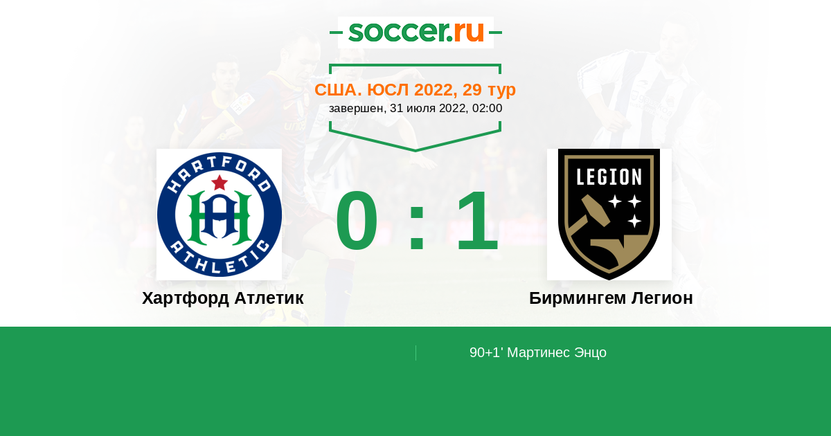 Протокол матча Хартфорд Атлетик против Бирмингем Легион