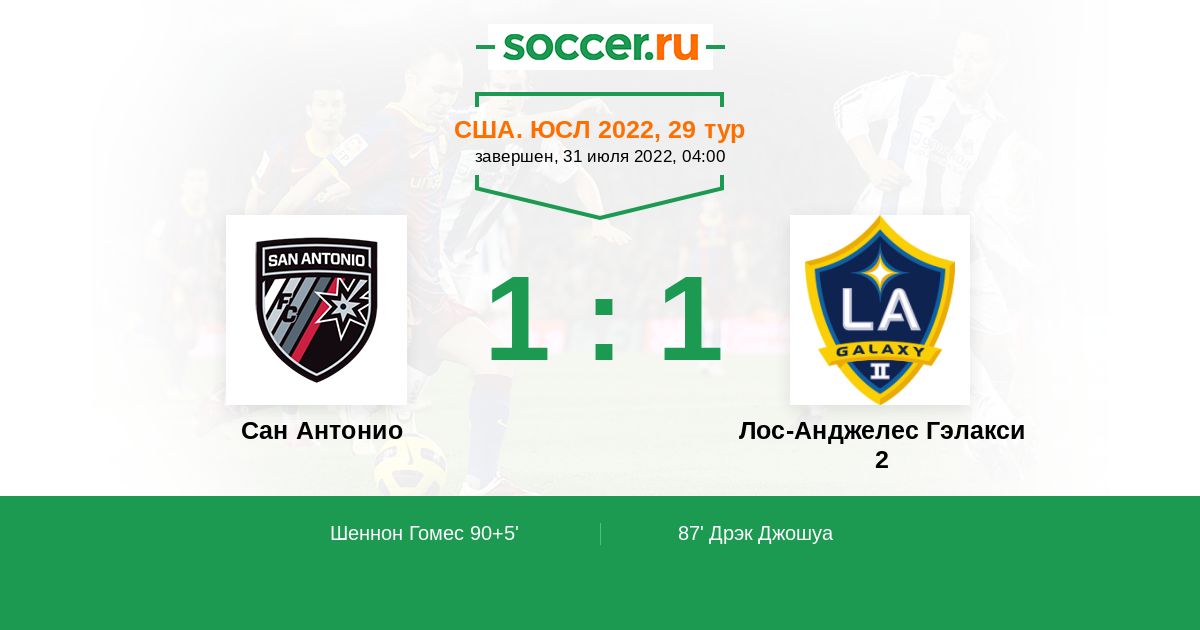 Протокол матча Сан Антонио против Лос-Анджелес Гэлакси 2