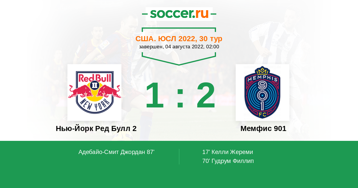 Протокол матча Нью-Йорк Ред Булл 2 против Мемфис 901