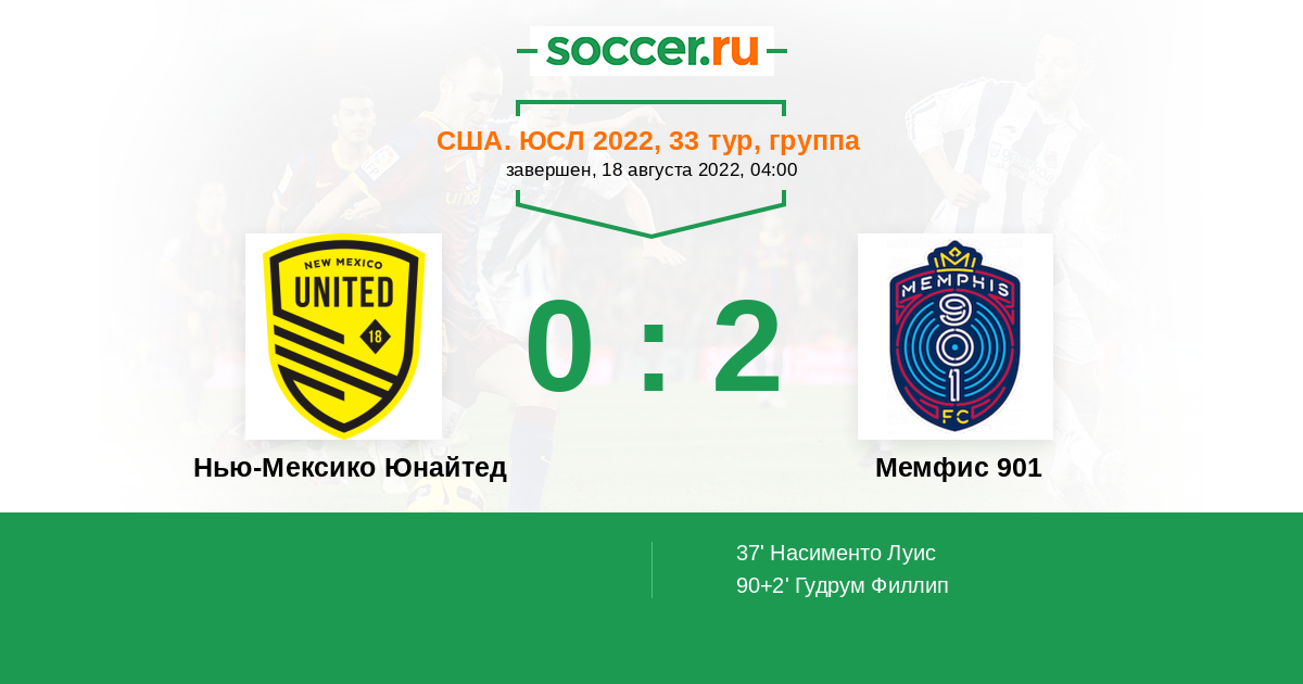 Протокол матча Нью-Мексико Юнайтед против Мемфис 901