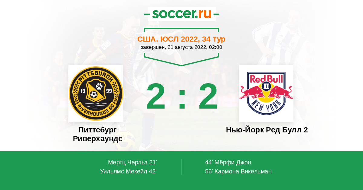 Протокол матча Питтсбург Риверхаундс против Нью-Йорк Ред Булл 2