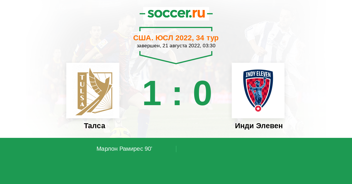 Протокол матча Талса против Инди Элевен