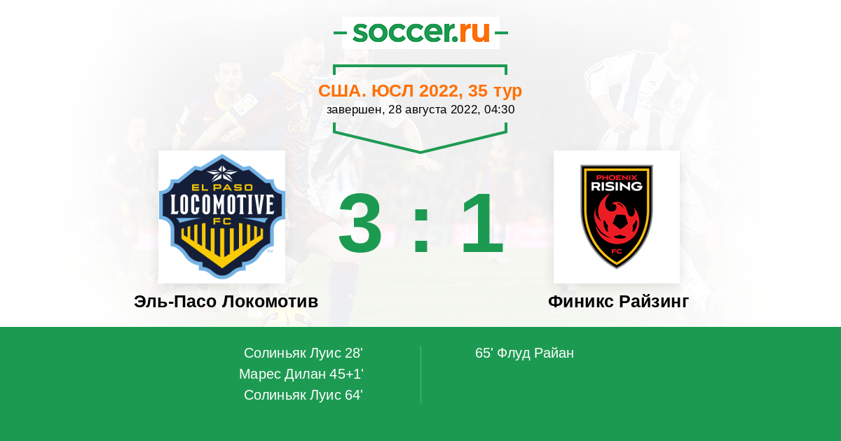 Протокол матча Эль-Пасо Локомотив против Финикс Райзинг