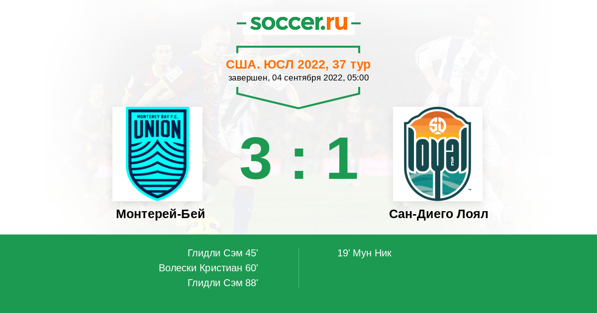 Протокол матча Монтерей-Бей против Сан-Диего Лоял